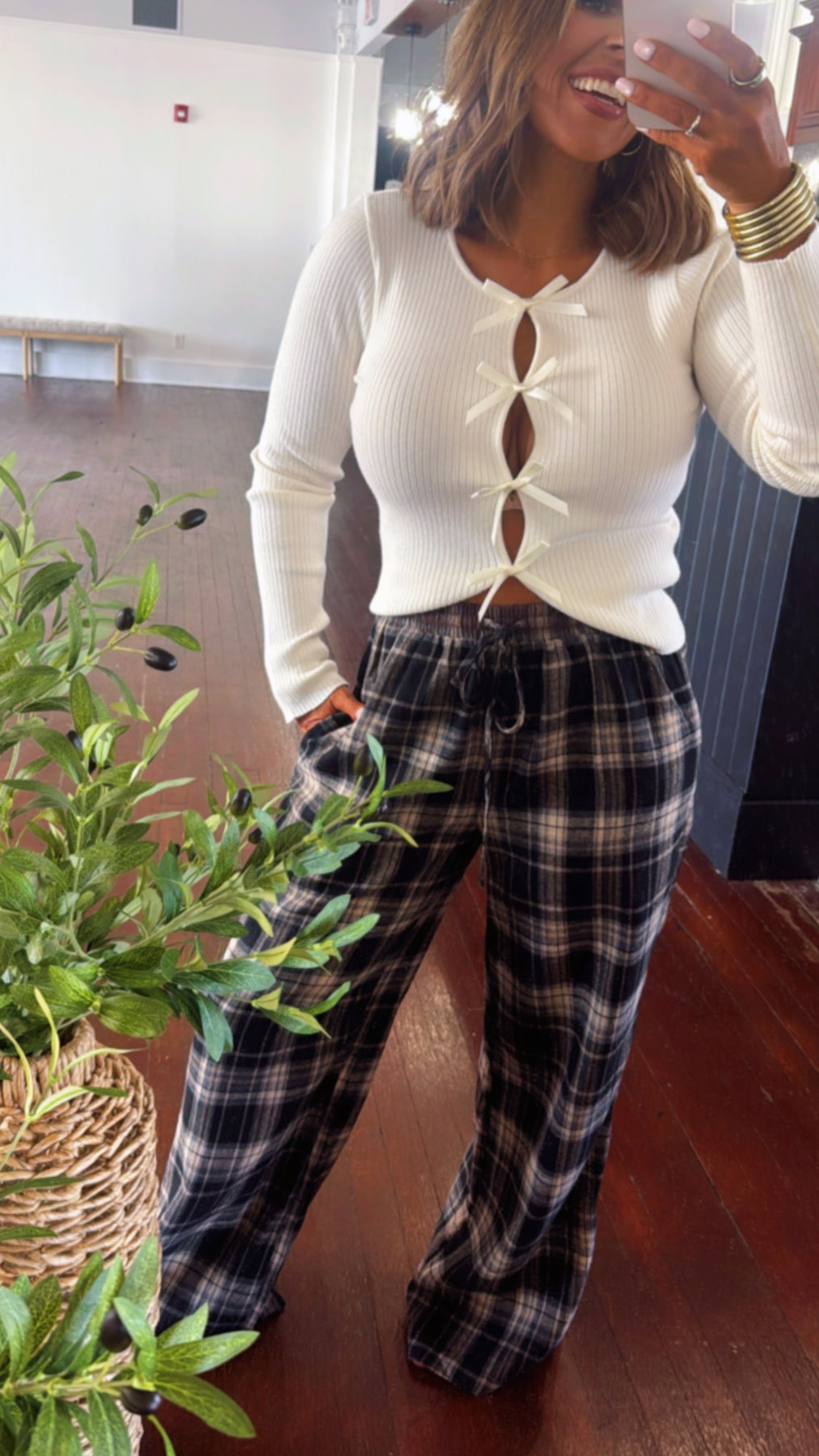 On Second Thought Satin Bow Long Sleeve Top , Ivory