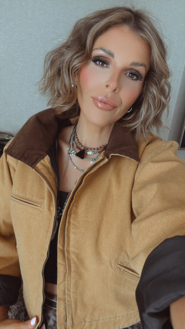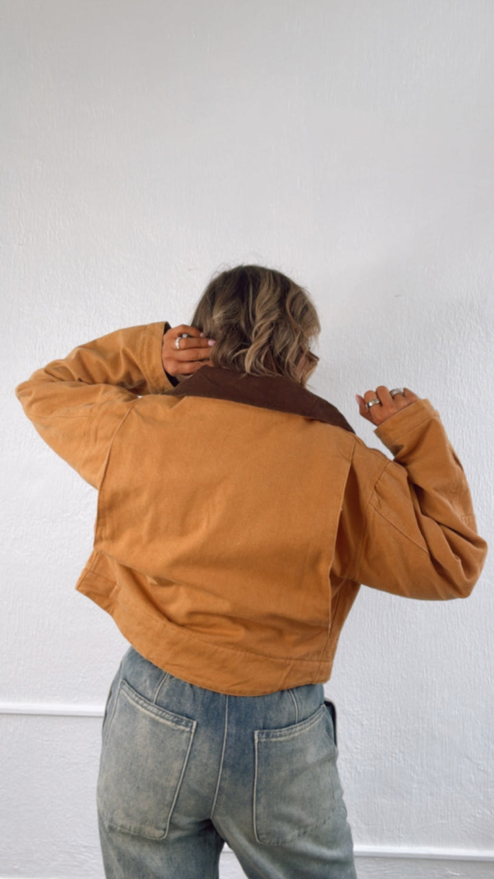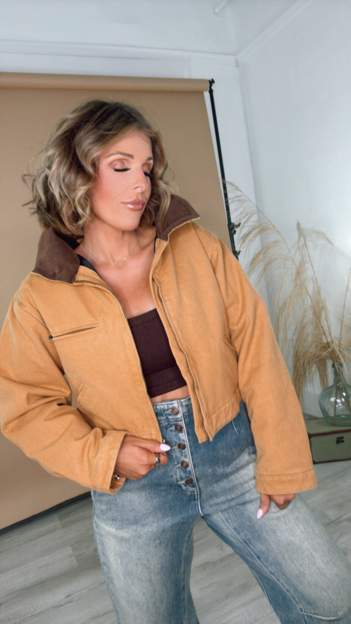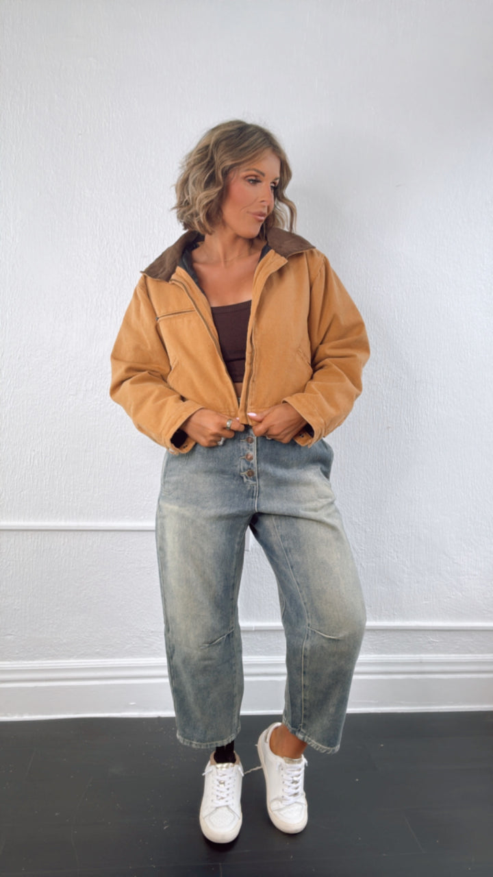 The Overtime Cropped Vintage Work Jacket provides a vintage look. This jacket adds a touch of style and is a must-have staple for various occasions.