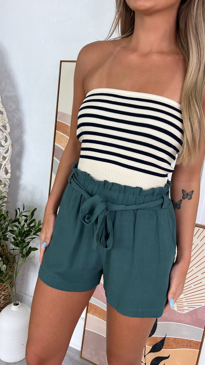 Hit the streets in style wearing these Paper Bag Tie Detail Shorts! With an elastic paper bag style waistband and tie belt detail, you'll be sure to turn heads no matter the occasion. Make 'em your go-to for a unique look!