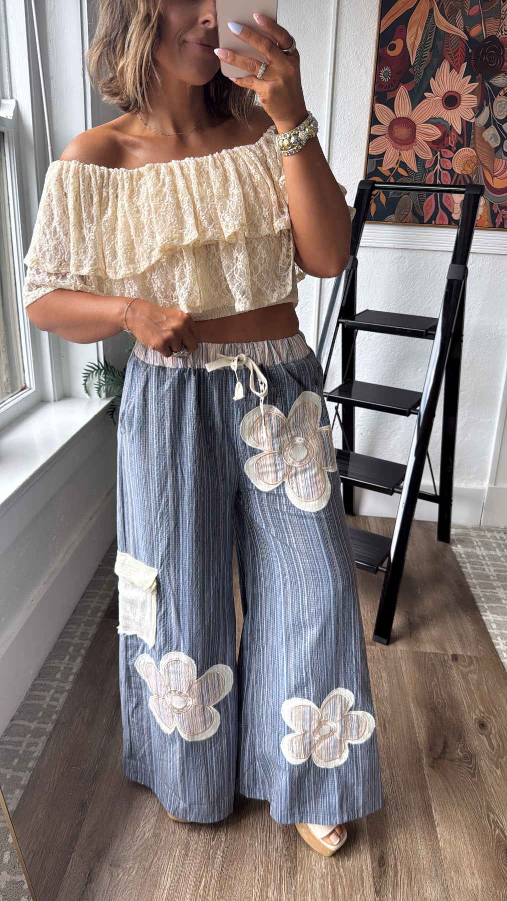 Say hello to your new statement pants. The Isla Floral Pant by POL combines laid-back comfort with standout style. Featuring a wide-leg silhouette and bold floral patch details, these flowy pants bring the perfect blend of boho vibes and elevated edge. They’re the effortlessly cool piece your closet’s been craving.