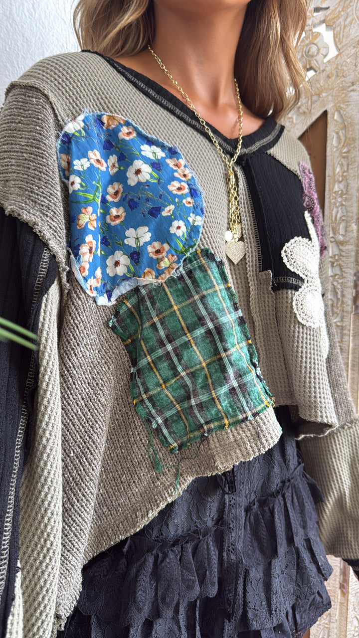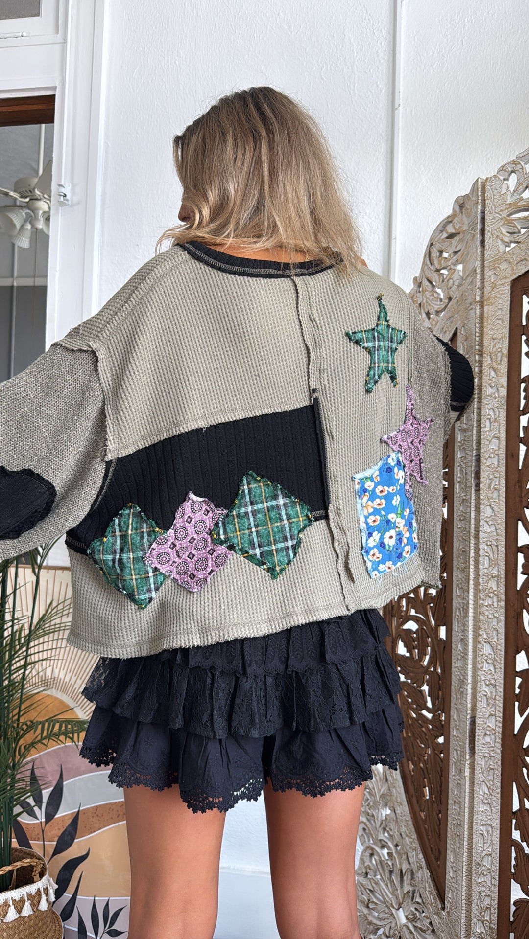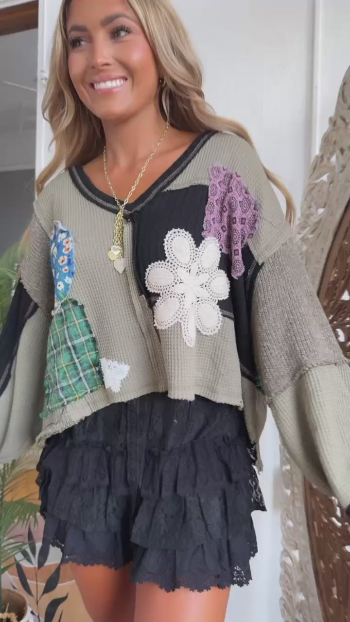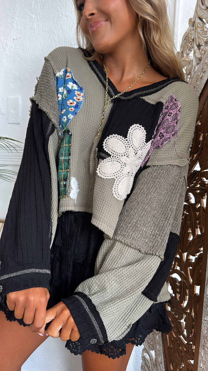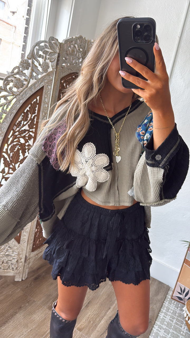 Embrace your fun and flirty side in the POL: Shadow Garden Bloom Top! This top features a playful floral patch on the front and a colorblock design.