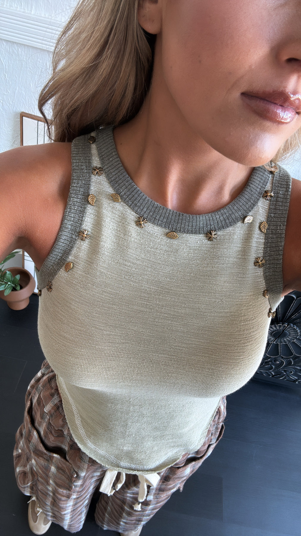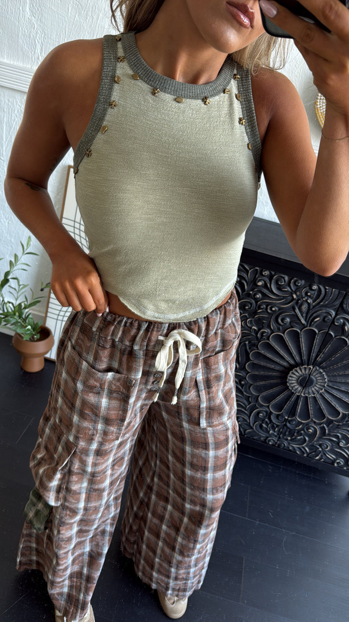 Take your style to the next level with the POL: Simple Wear Basic Studded Detail Tank. This unique tank features a studded design throughout. Upgrade your wardrobe and stand out from the crowd with this must-have top.