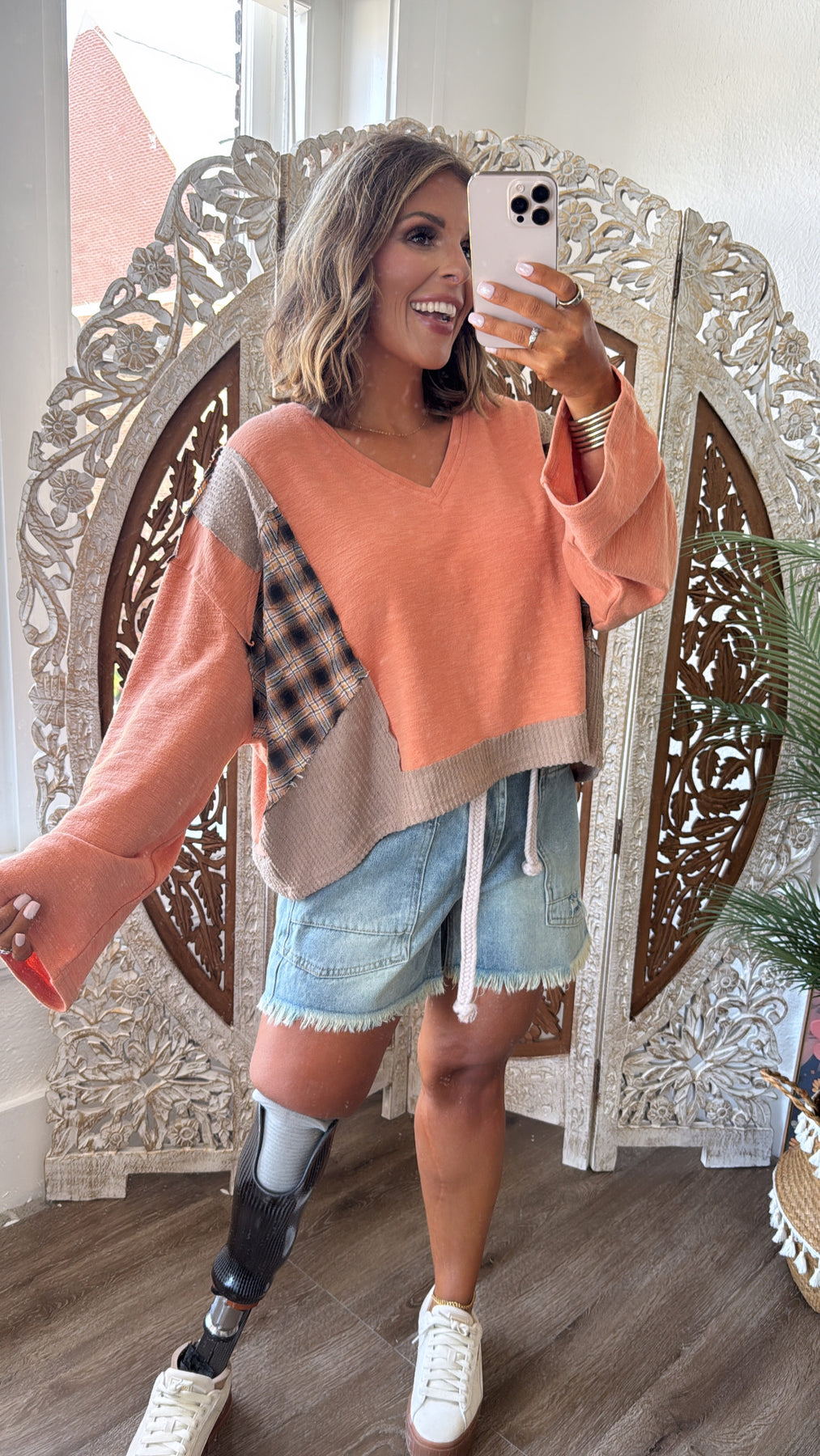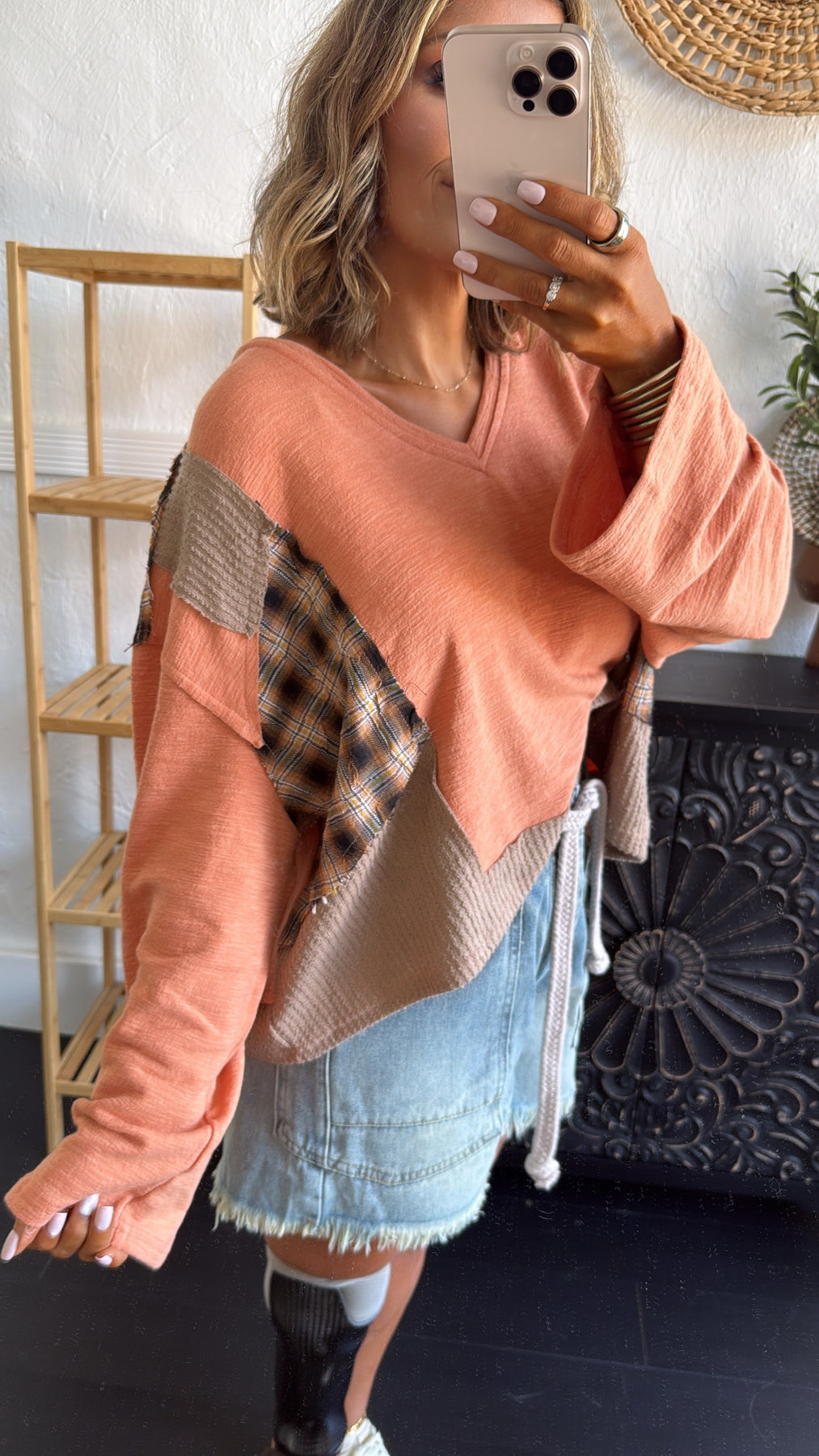 Tattered Treasure Patchwork Long Sleeve Top