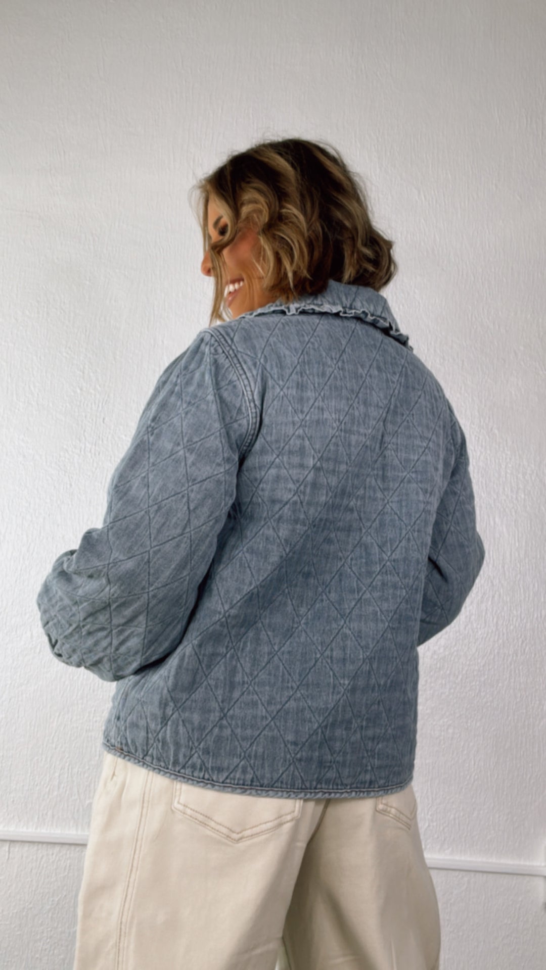 Rare Occasion Ruffle Collar Quilted Denim Jacket
