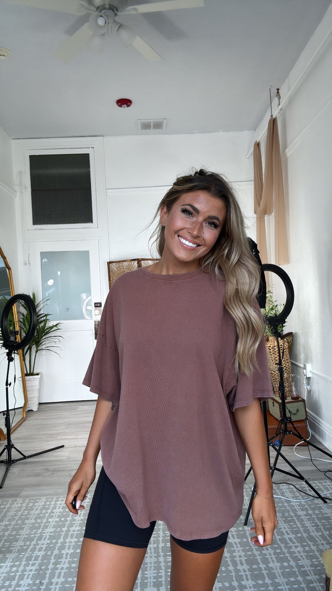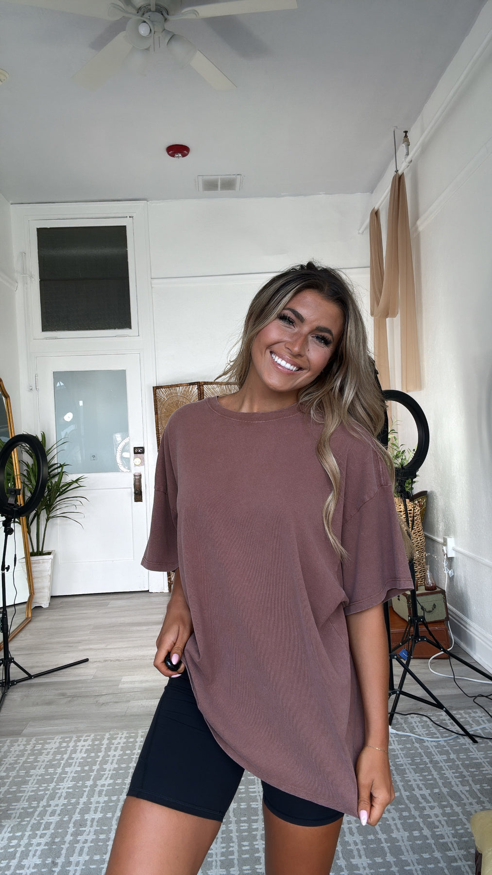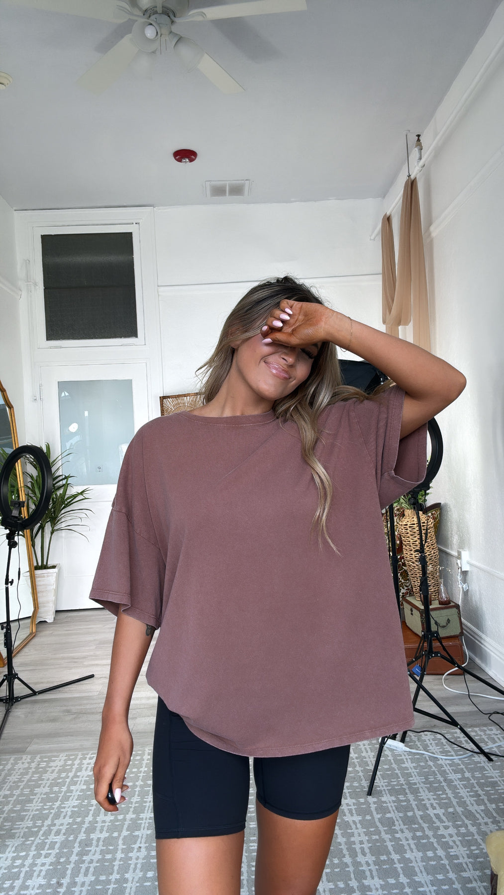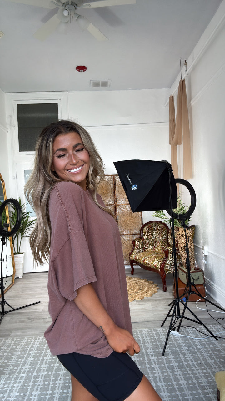The BEST basic! The Soft Structure Basic Tee is a stretchy, basic tee featuring a high neckline and mineral wash. This top is great alone or layered for cooler days!