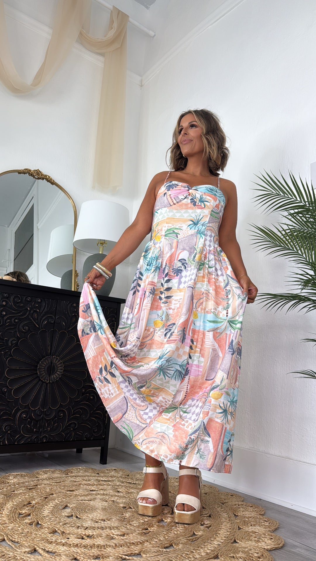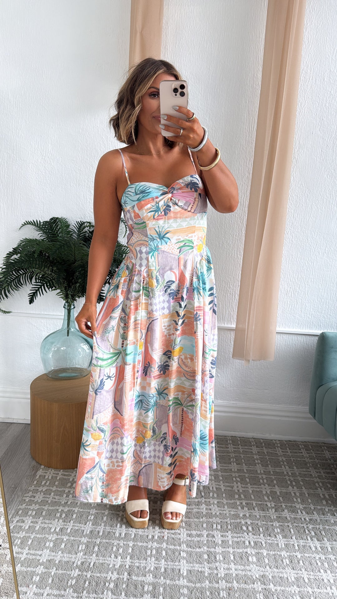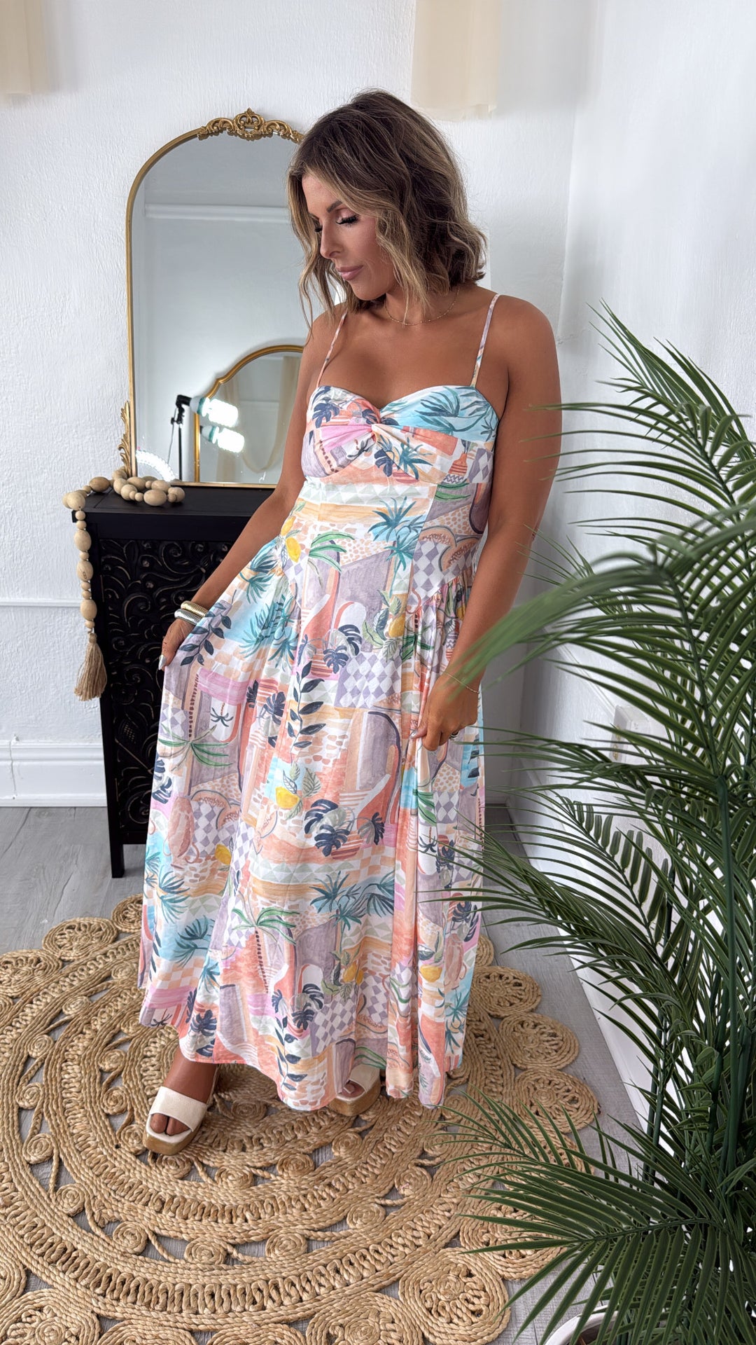 Elevate your summer style with our Tropical Springs Midi Dress. Perfect for a day out or a special event, this midi dress is a must-have for any fashion-forward girl!
