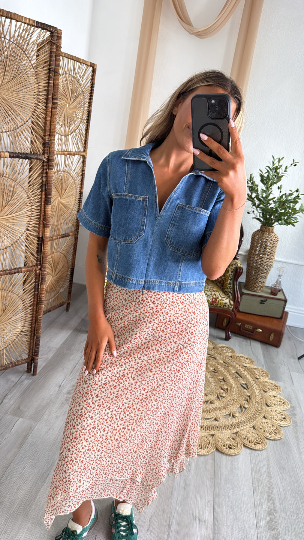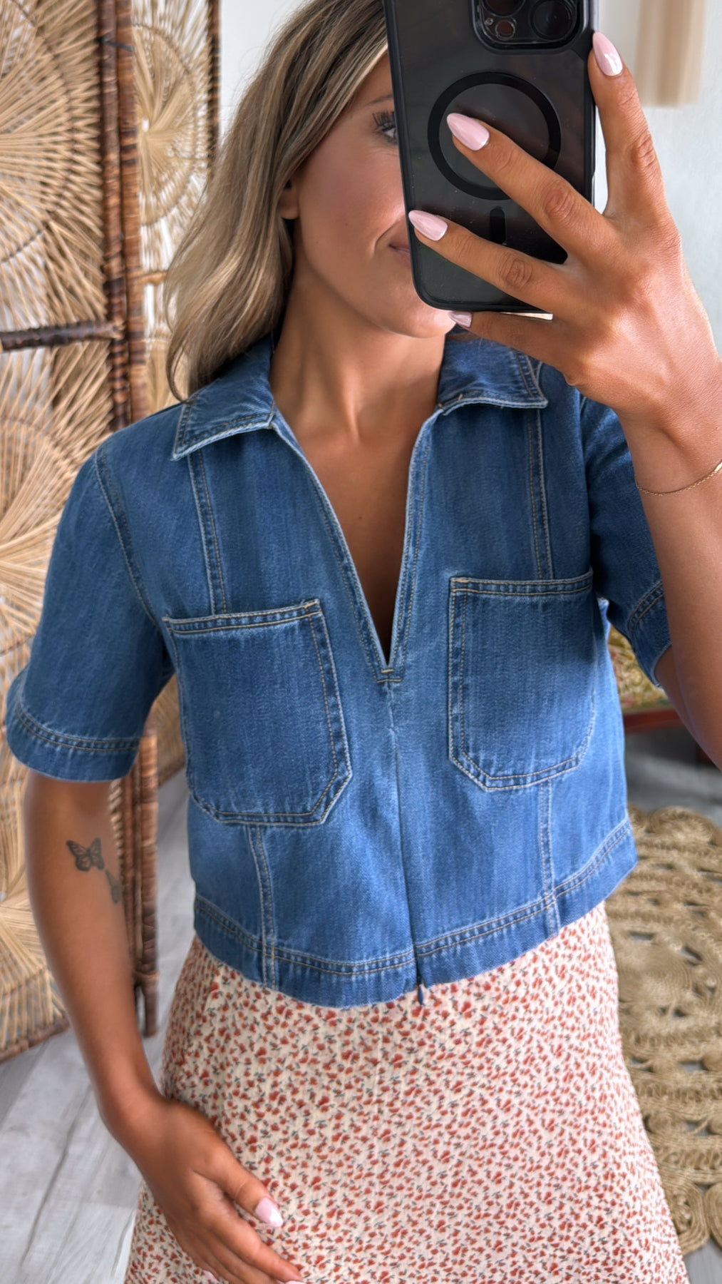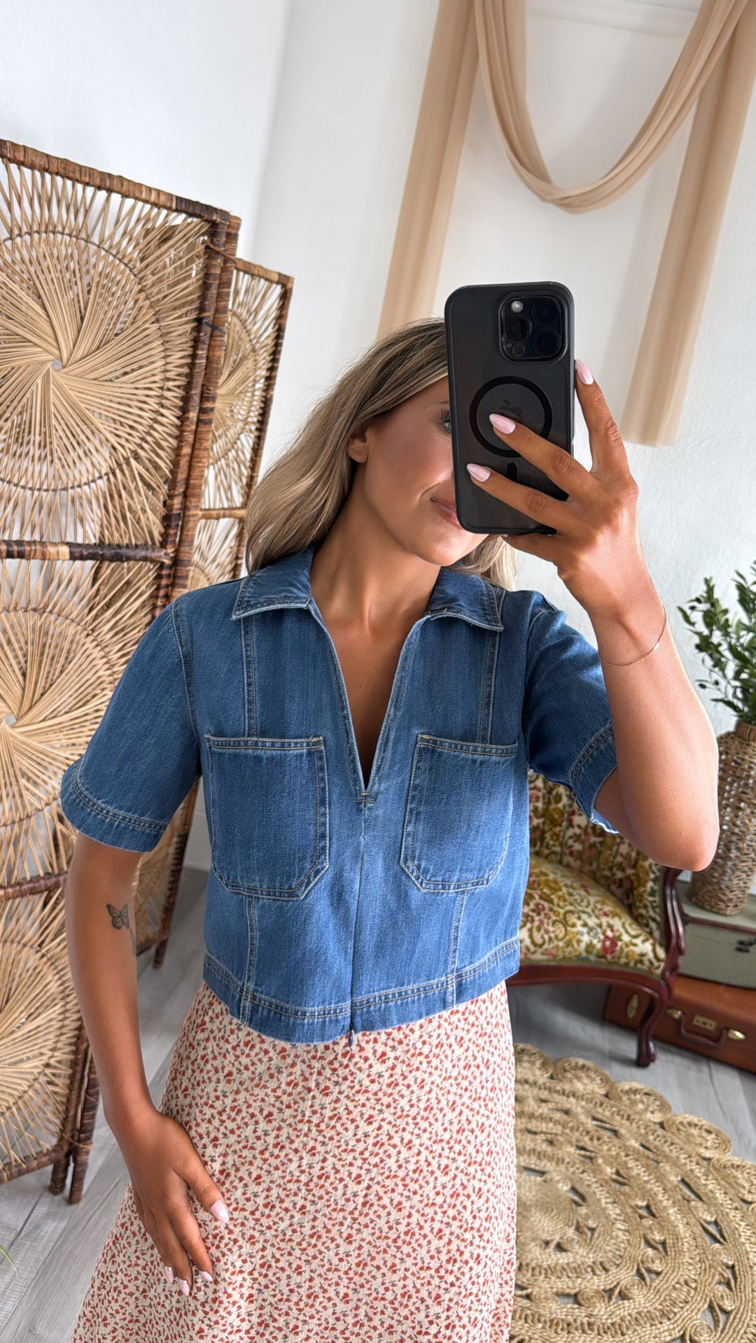 The Trueform Denim Top is a trendy piece designed to make a statement, featuring high-quality and comfortable fabric. From classic to modern, casual to elegant, this top is perfect for you!